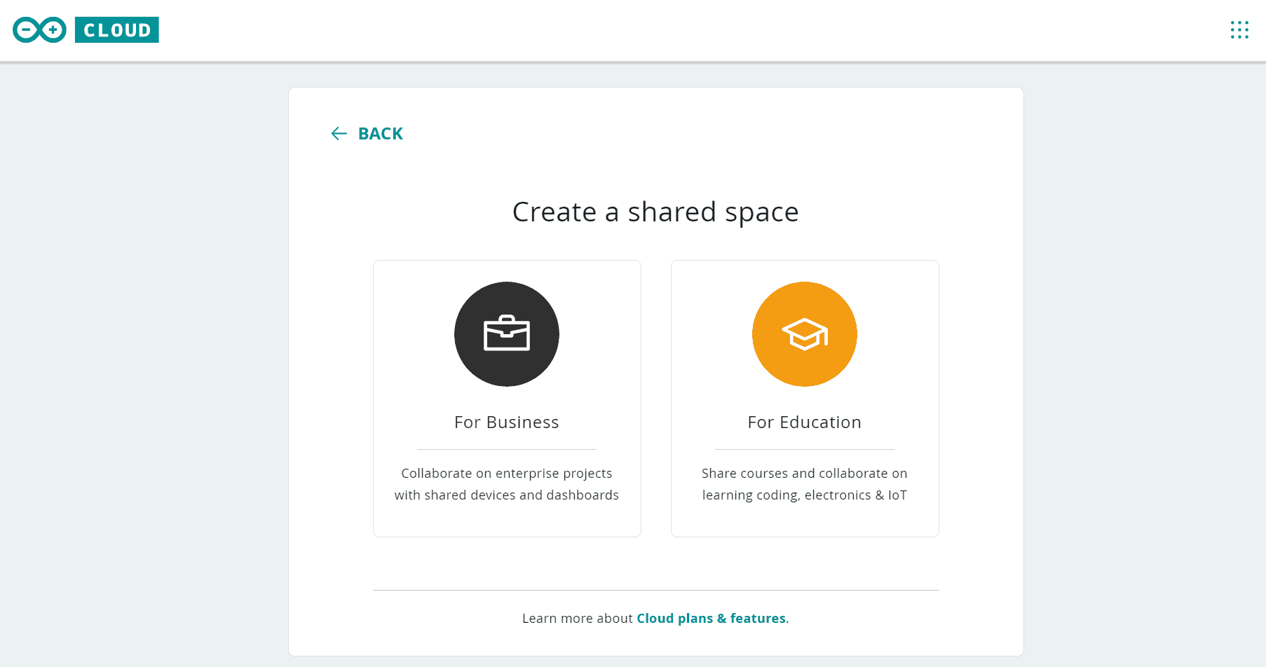 Congratulations! Now you own a Shared Space linked to your Arduino account.