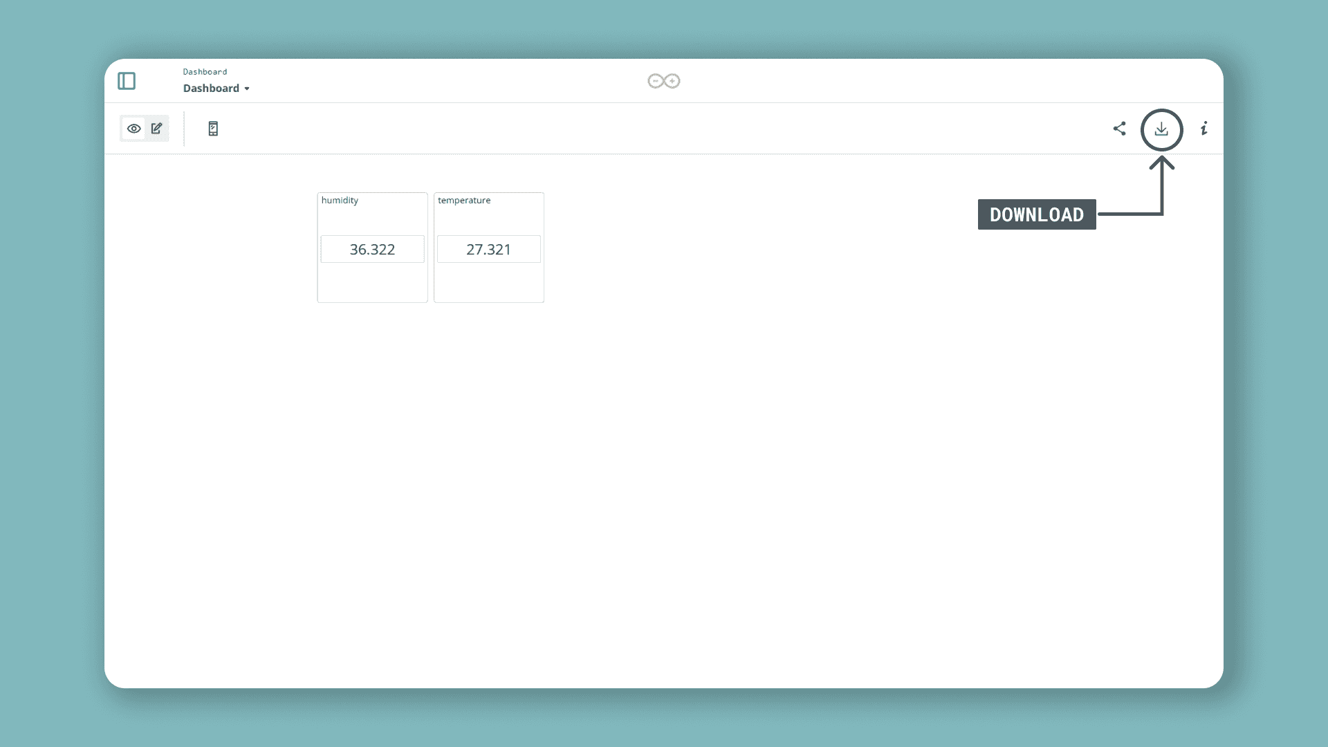 First, to download historical data navigate into one of your dashboards on the Arduino Cloud.
