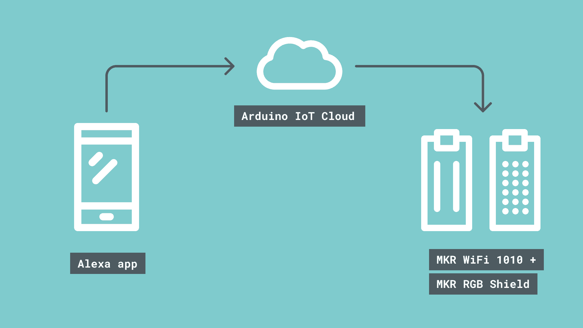 . These will help us control the MKR RGB Shield. If you are using any other matrix or RGB pixel, you will need to adjust this example.When we later on will be connecting the Cloud to Alexa, the data will be received directly from the Alexa app. Whenever the data updates, the