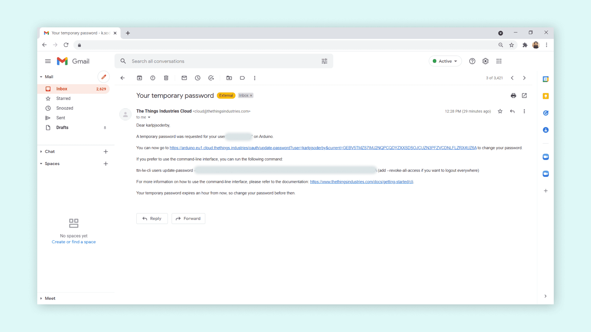 Your account name is listed in the email sent out by The Things Industries (TTI).