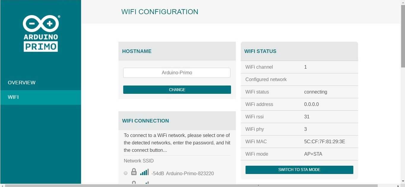 Please note: Keep in mind that it is advised to switch only in STA MODE because so the board will be visible on the Arduino IDE and you will be able to protect it from possible attacks, since it will no longer be visible as open network.