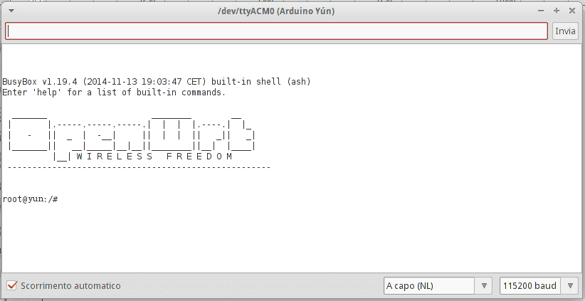 Due to continuous improvements and suggestions coming from both the OpenWrt community and the Arduino community, version of OpenWrt-Yun installed on your Yún may be out of date. Please check the upgrade tutorial and be sure you're running the latest version available.