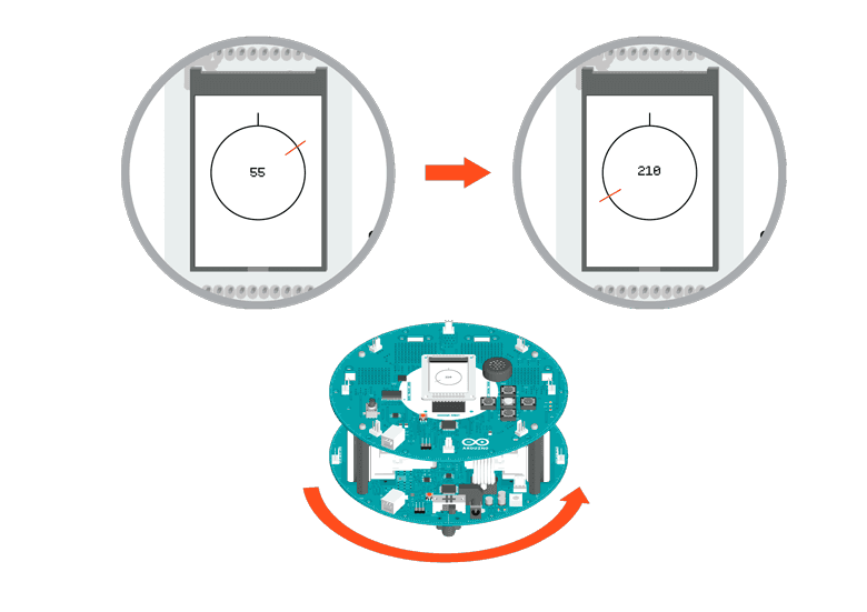 When you hold the robot in your hands and rotate, you will the screen change, indicating direction.