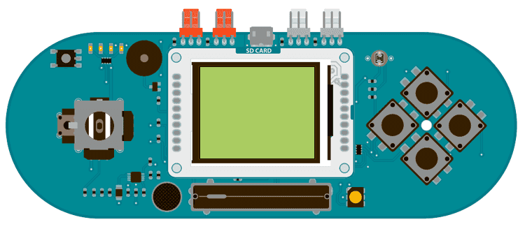 Attach the screen to the socket on your Esplora, with the label "SD Card" facing up.