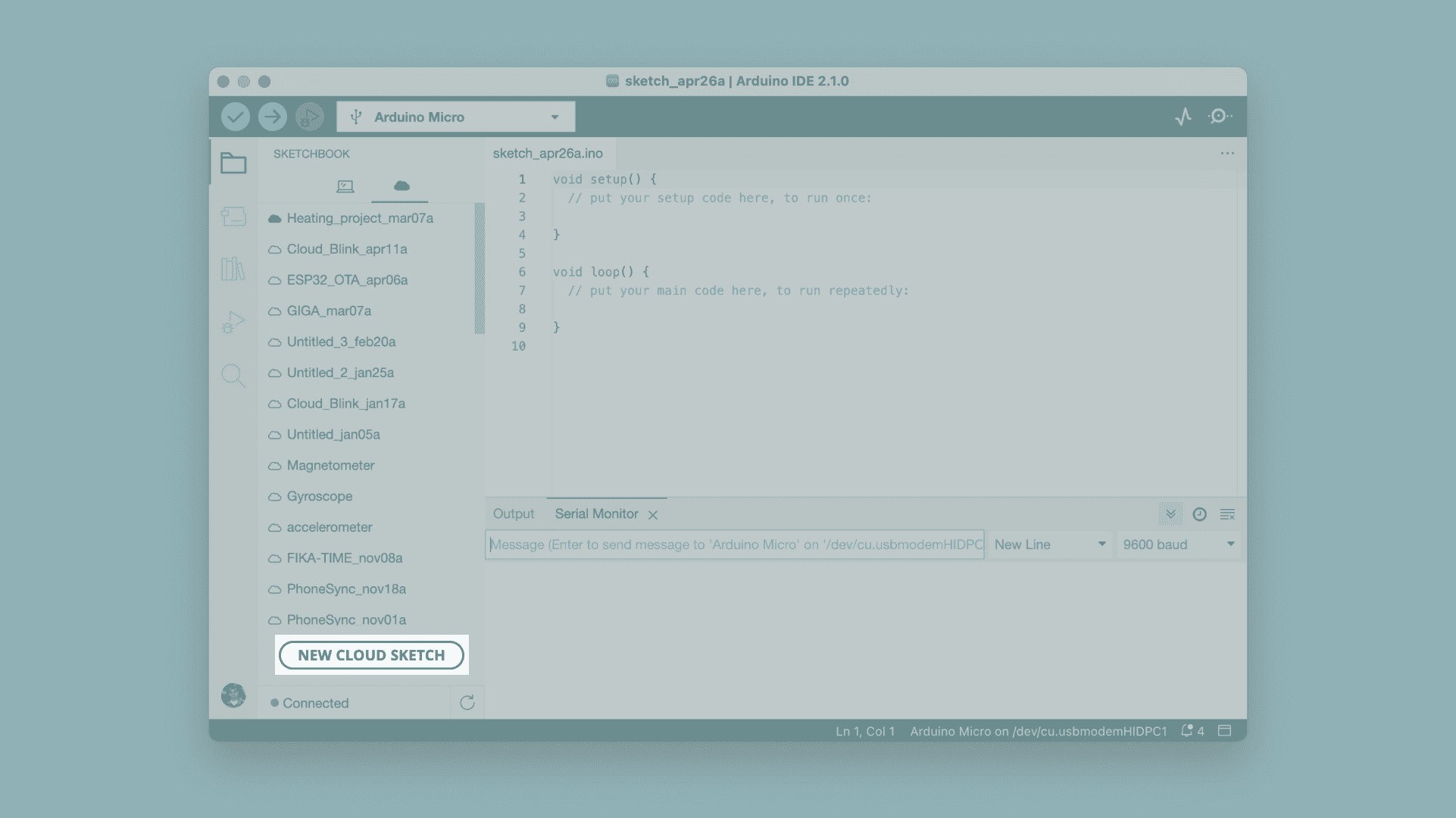 The Remote Sketchbook feature lets you sync sketches from your Arduino Cloud sketchbook with your local computer. To enable this feature, you will need to login to your Arduino Cloud account.