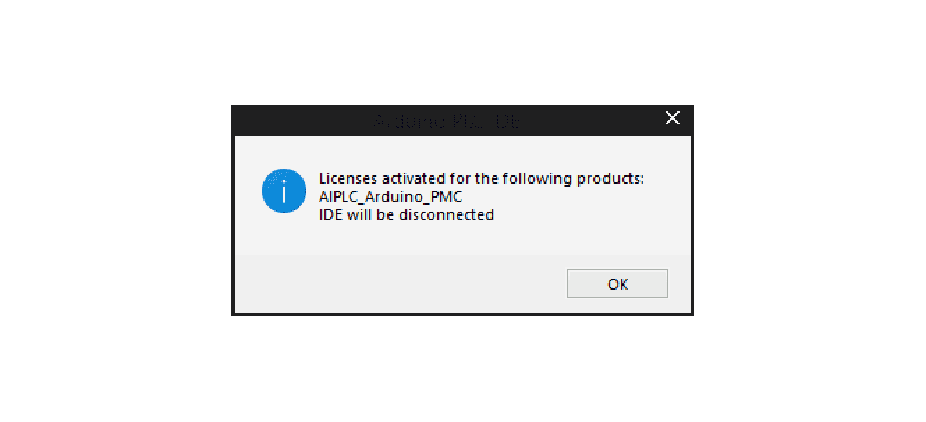 After you click the Activate button, the IDE will bind the license to the hardware ID. A popup telling you to reboot the target (which is the device connected to the PLC IDE) will show up; press the reset button of your device to reboot.