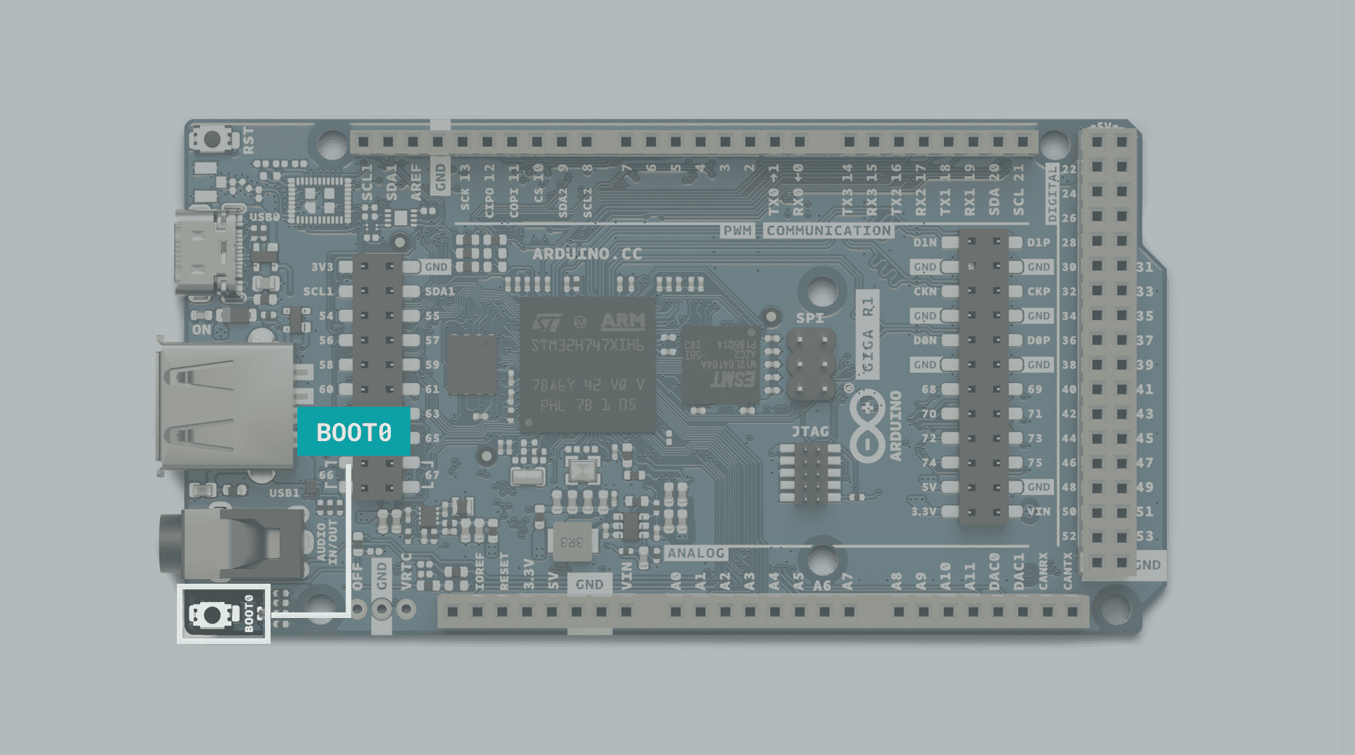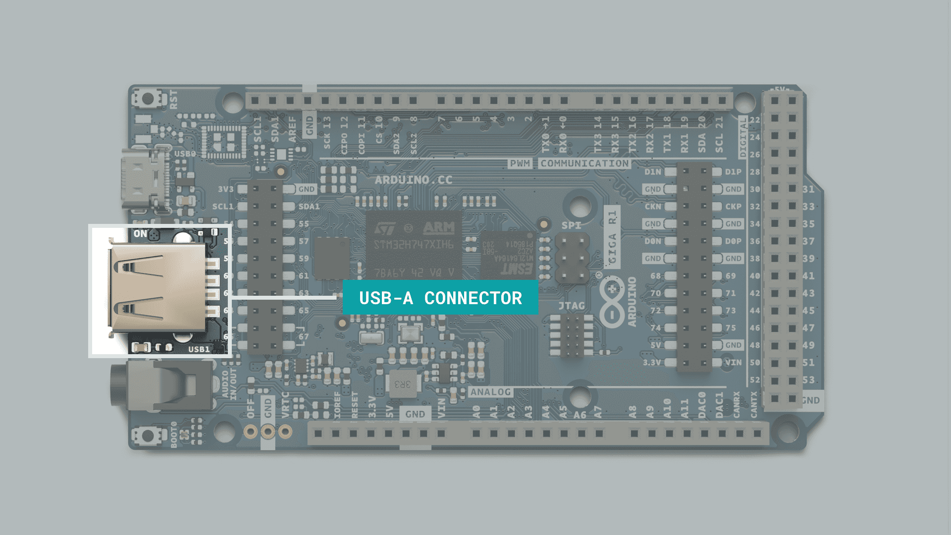 *Note: In this configuration, the USB serial port used for serial communication with the computer is occupied, so you won't be able to send or read information in the serial monitor. This includes uploading new sketches. To upload a new sketch you need to put the GIGA R1 in DFU mode by double pressing the RST button.***