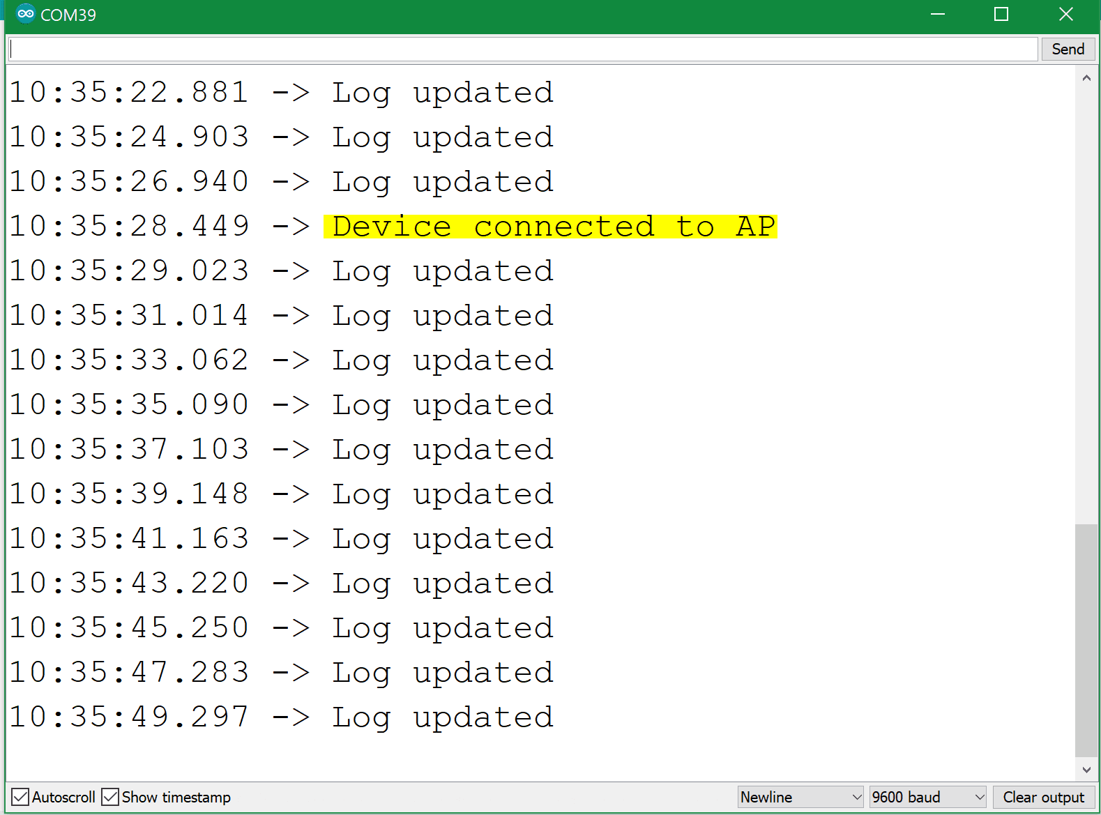 function, the communication with the Wi-Fi module, the Environmental Shield and the SD card is checked, and the server is run on port 80, and we are notified on the Serial Port throughout printWiFiStatus();