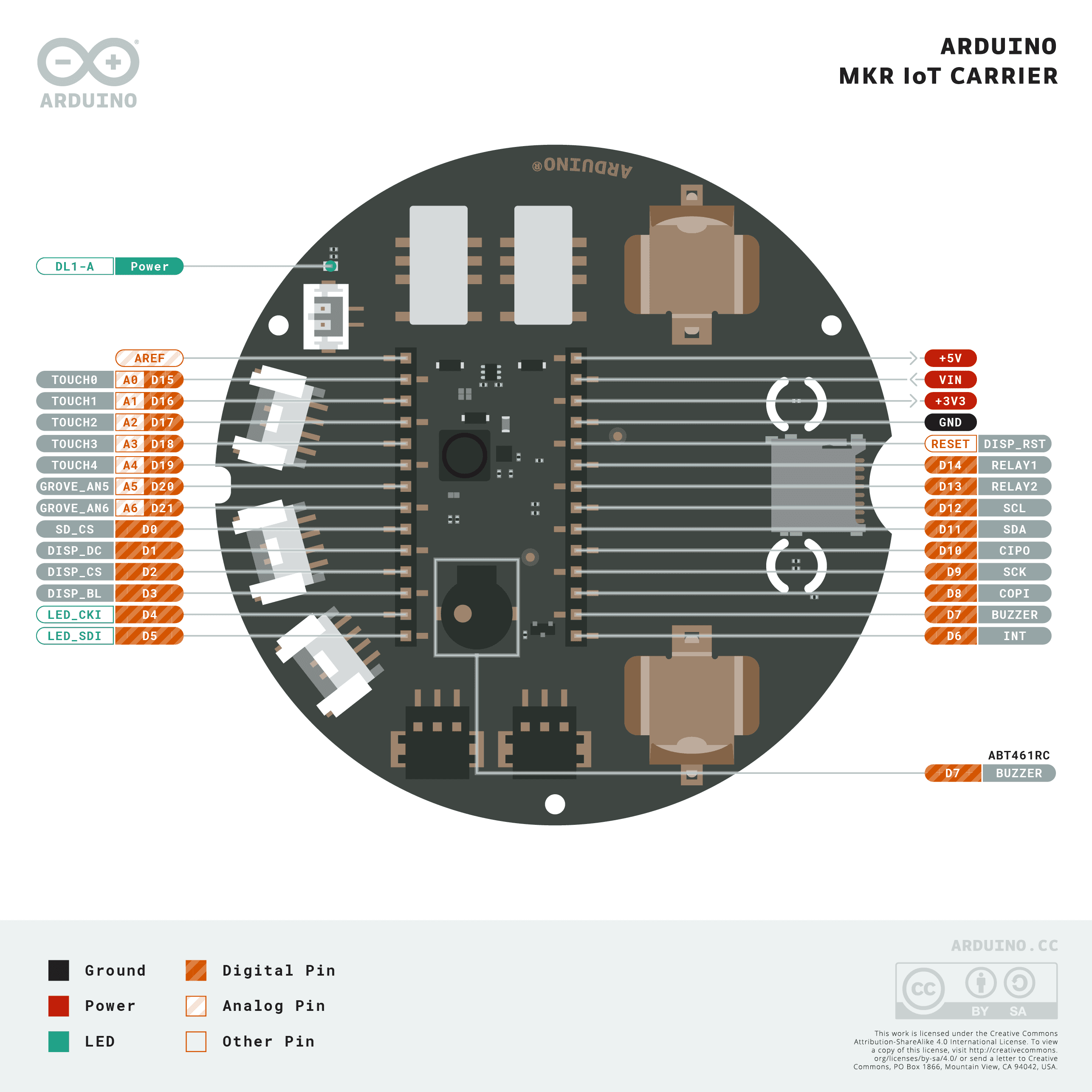 The MKR IoT Carrier can be controlled through the Arduino Cloud, a Cloud service that allows us to create IoT applications in just minutes, if combined with an Arduino Cloud compatible board. Here's a list of the Arduino MKR family boards that are compatible with the Arduino Cloud: