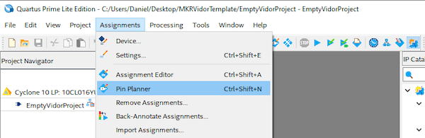 The Pin Planner with the pins for the Vidor 4000 uploaded.