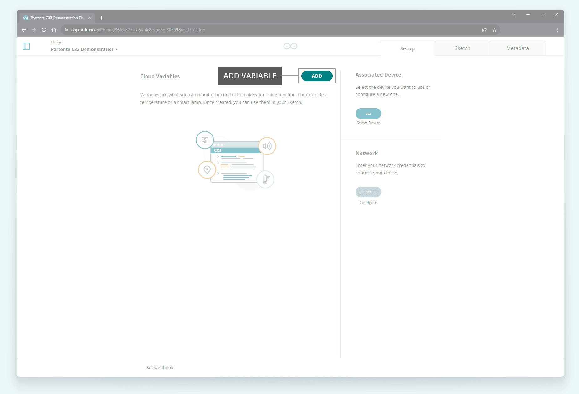 The project is now ready to add some variables to your "Thing"; navigate into Cloud Variables and click the ADD button to add variable.
