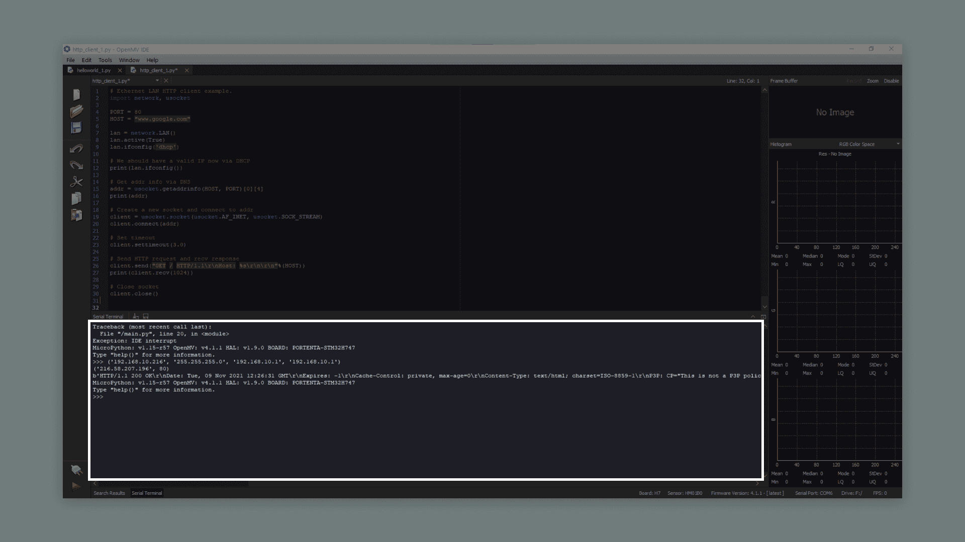 This will print the websites content in the serial terminal in OpenMV. The argument inside the